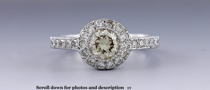 Dazzling 14k White Gold Light Yellow Diamond Halo Ring Size 6