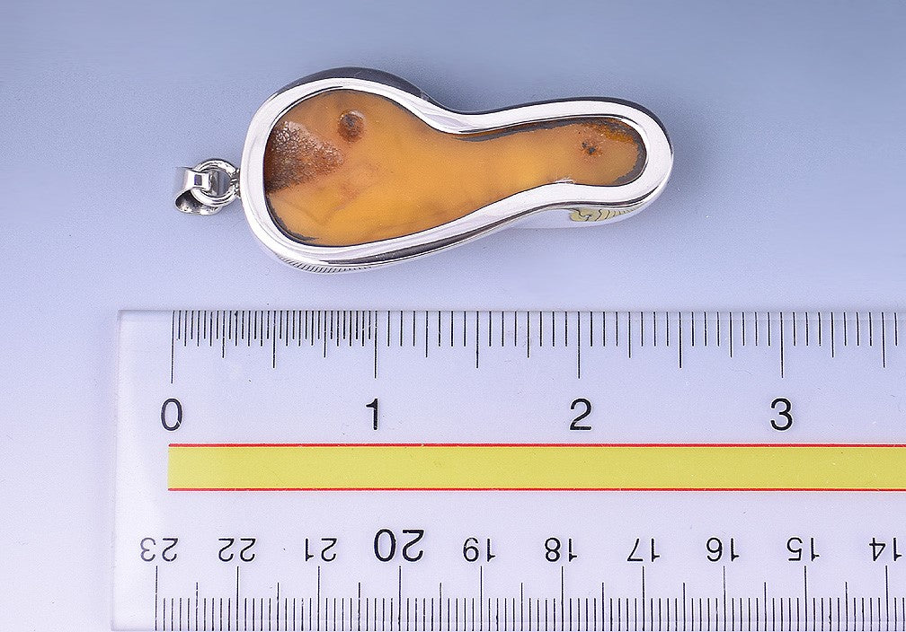 Dazzling Large Polish Amber Pendant Sterling Silver, Bezel Set, 1 1/2" by 1 "