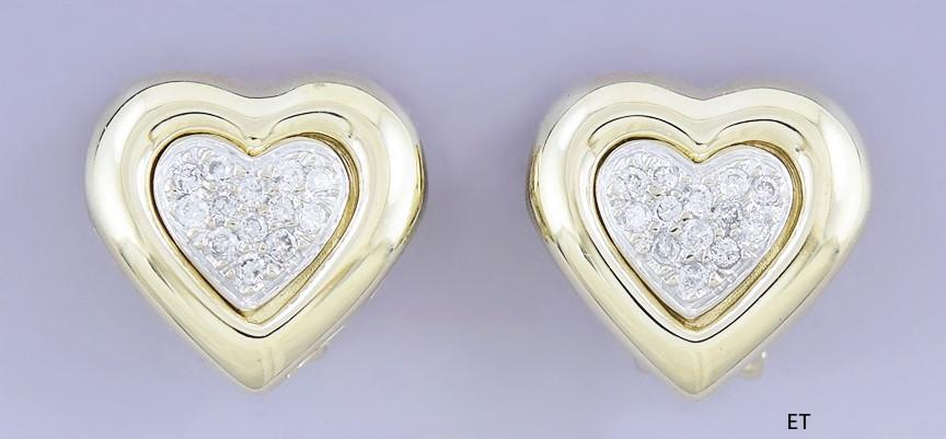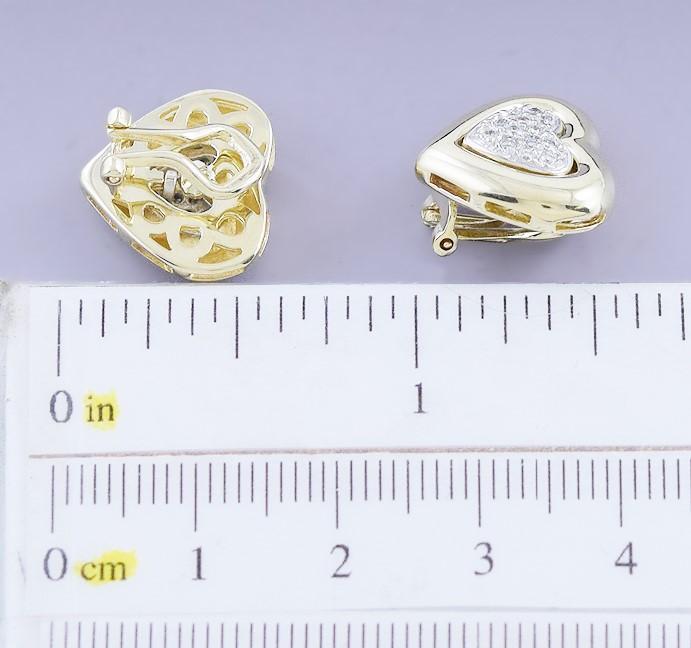 Dazzling Pair 14k Gold & Diamond Heart Shaped Clipback Earrings