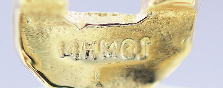 Each earring is stamped 14k on the back, as well as a maker's mark of MCI or