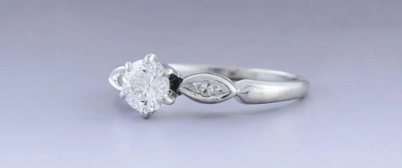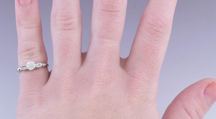 accent diamond in a leaf shaped setting. The gold setting itself is sleek and