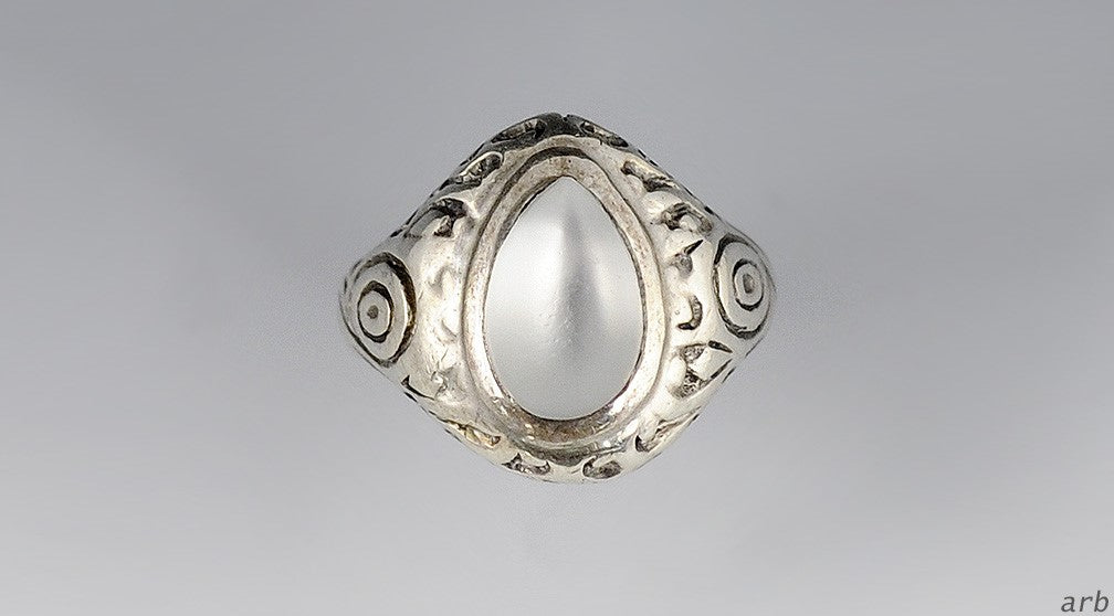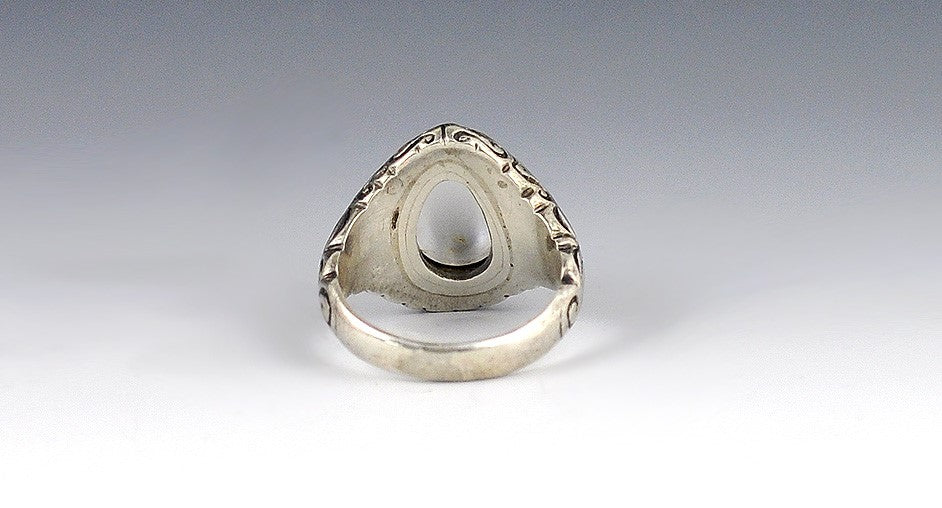 Delicious Engraved Sterling Silver Ring Set w/ Teardrop Shaped Moonstone Sz 4.75