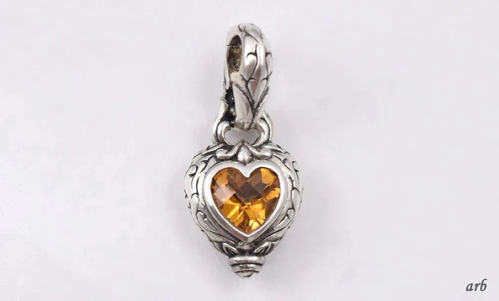 Delightful Modern Sterling Silver and Yellow Citrine Heart Pendant Enhancer