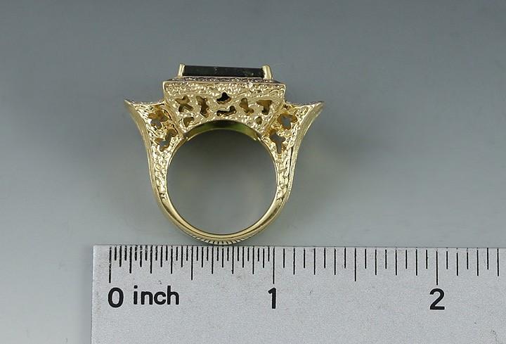karat gold. This is a modern piece. The central stone of the ring is a large