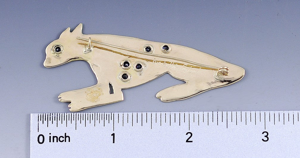 Diana Kim England 14k Yellow Gold Sapphire Hand Crafted Animal Pin Brooch