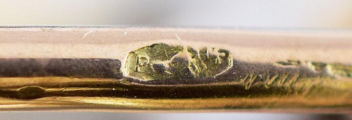 The pin is stamped on the shaft with an Austrian hallmark guaranteeing 14 karat gold, I believe the P is for the city of Pest.