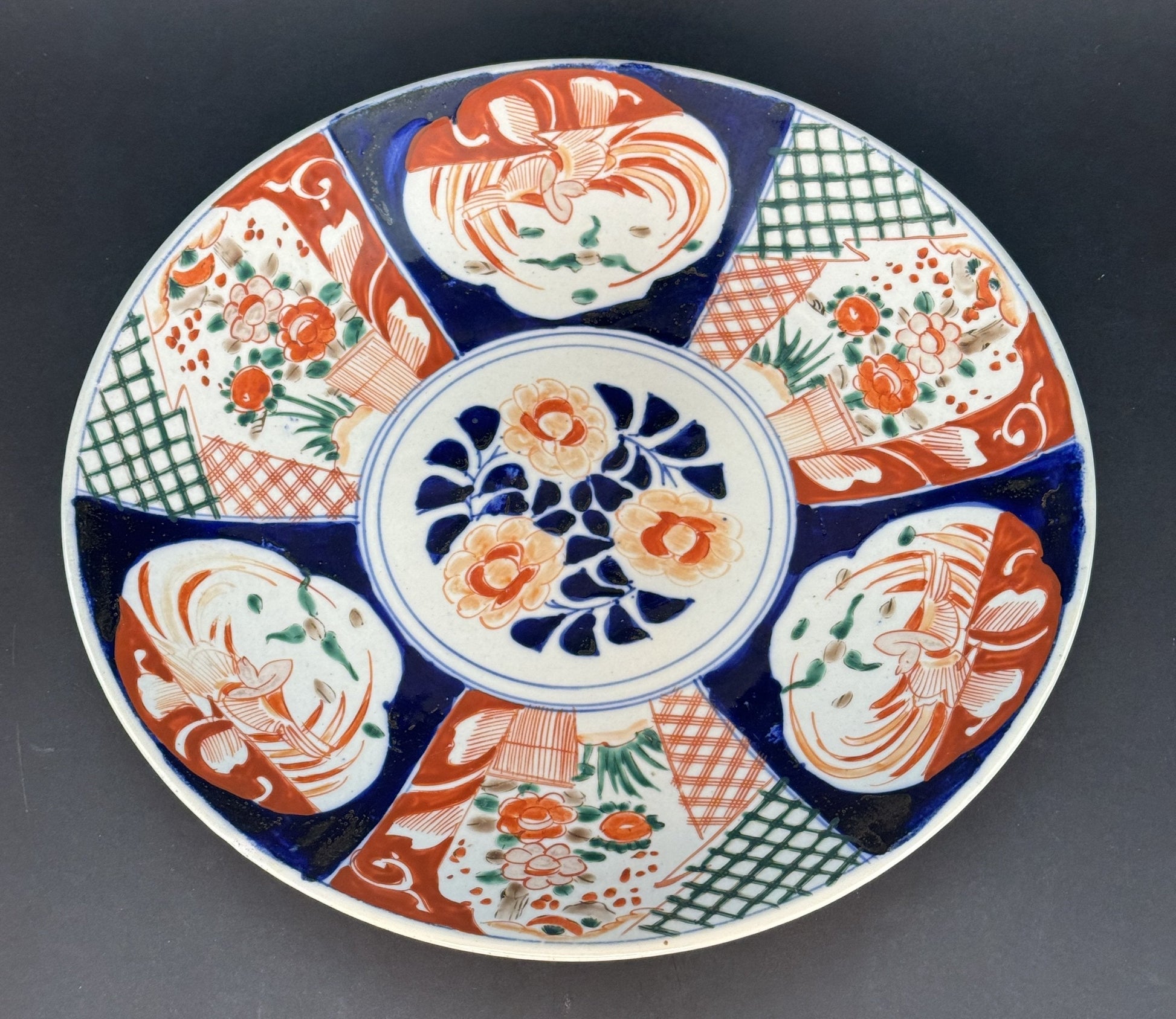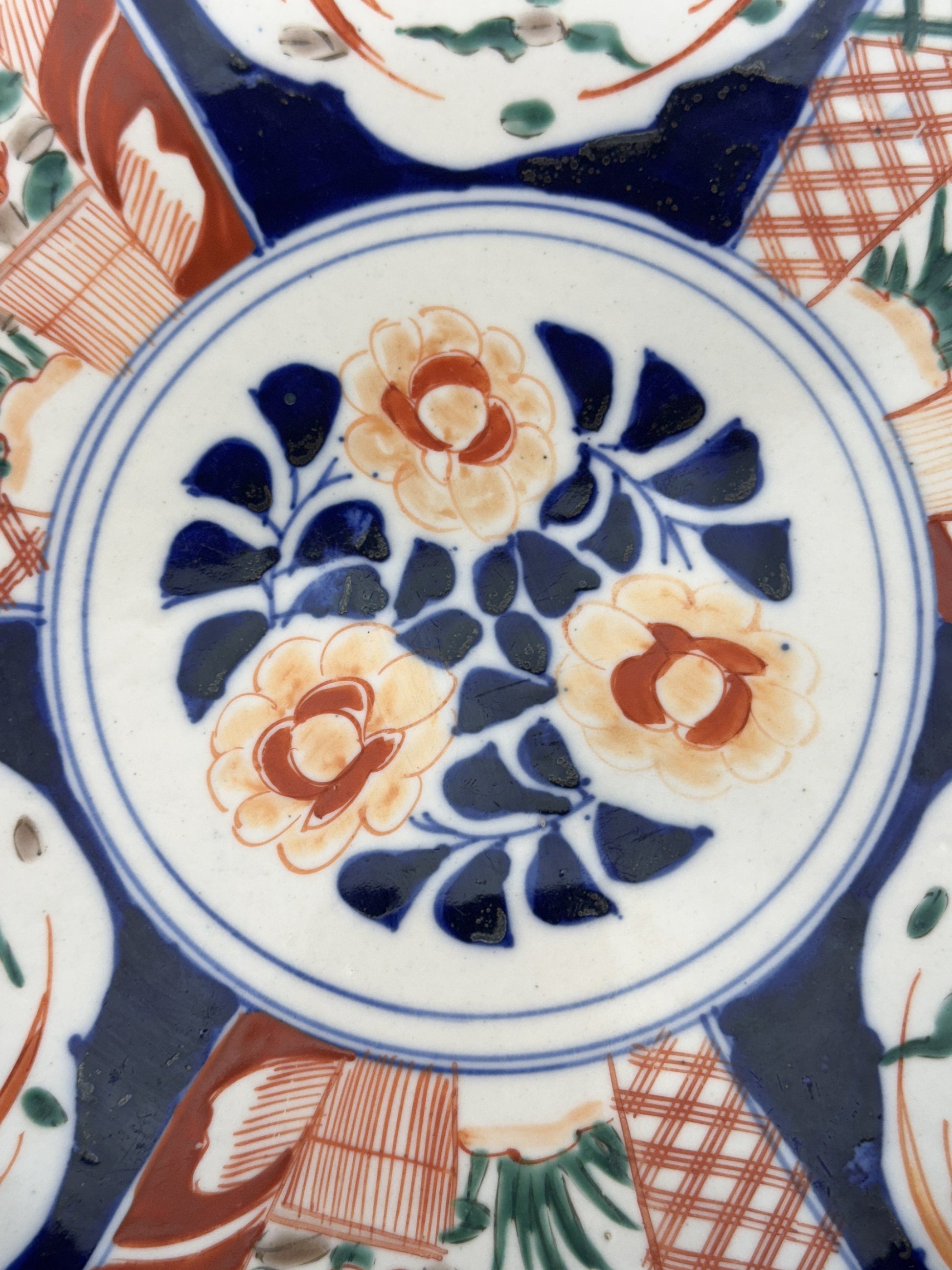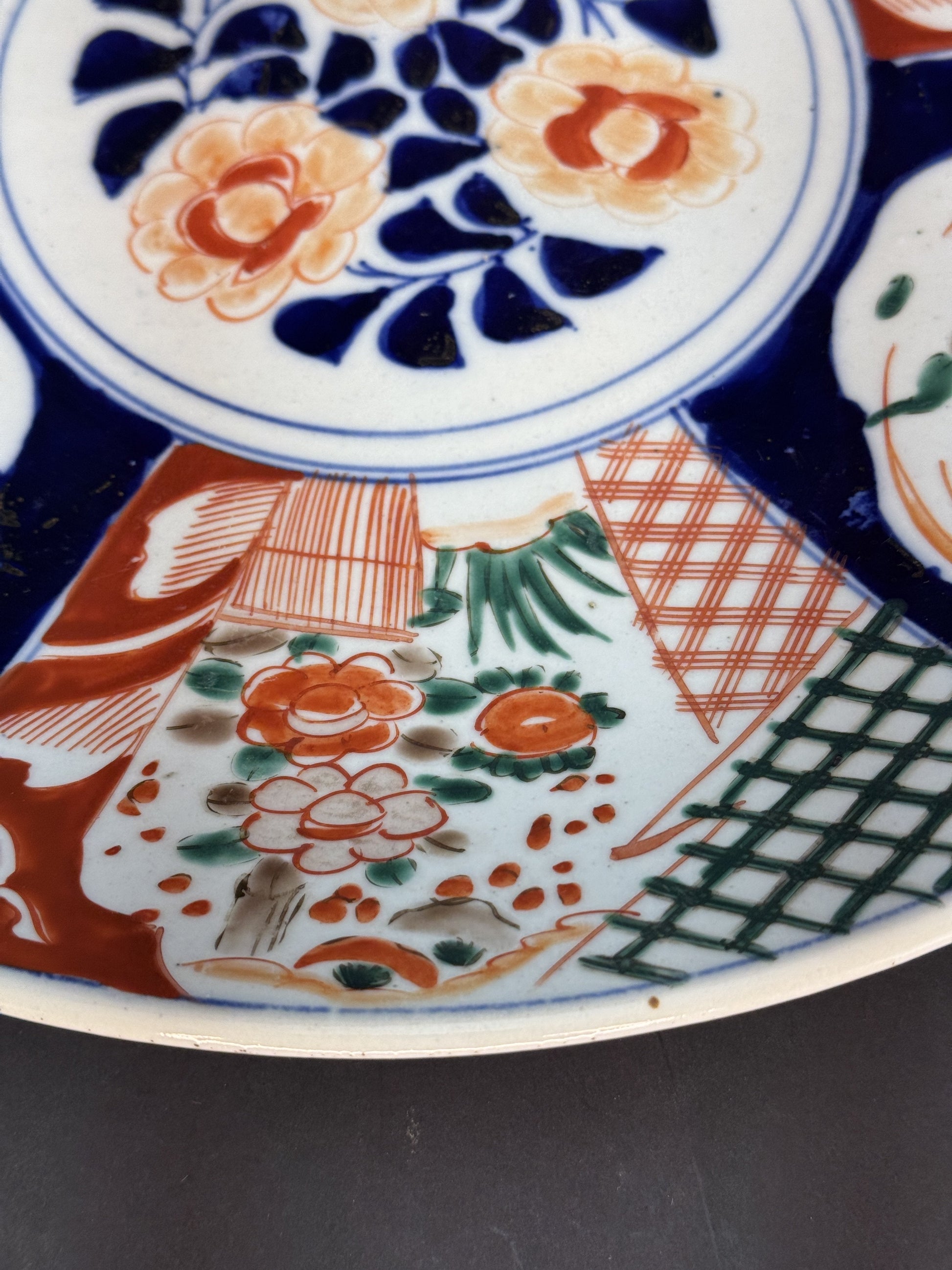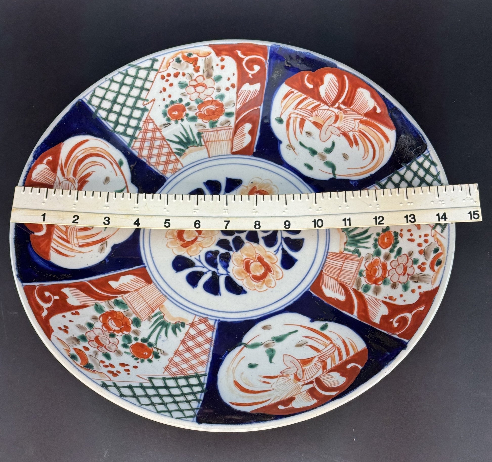 Early/Mid 1800s Japan Imari Porcelain 14.5" Six Panel Round Plate Charger