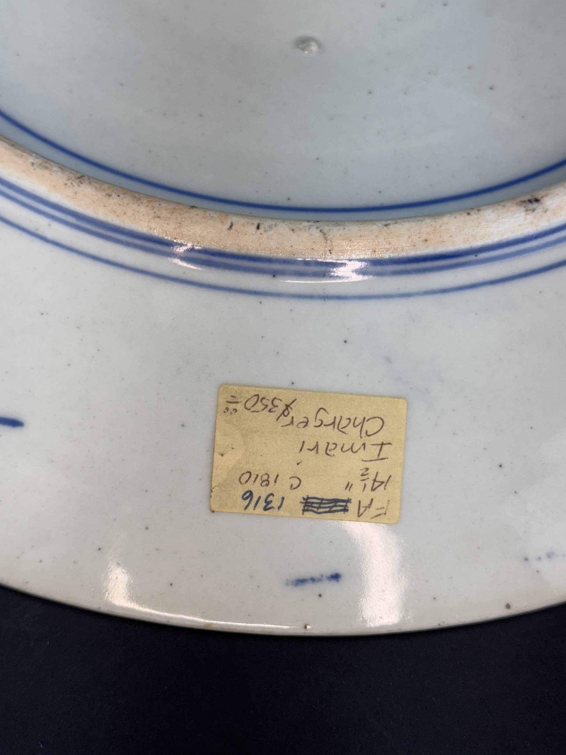 There is an old sticker on the underside referring to this as an Imari charger, circa 1810.