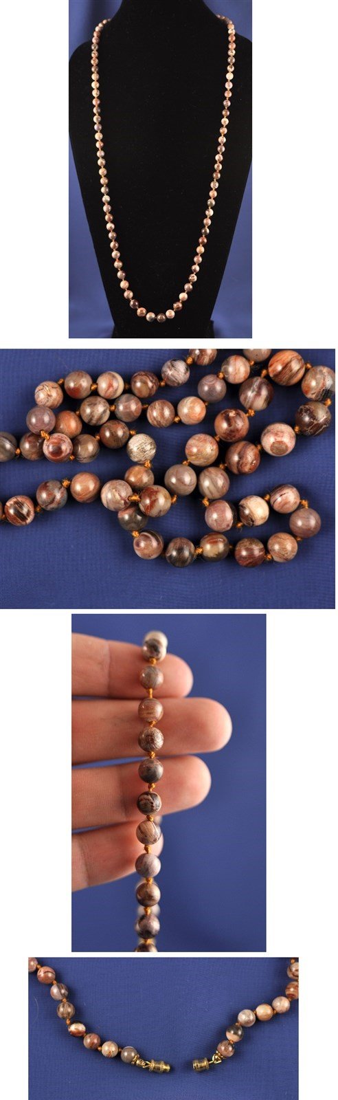 Presented is a three piece lot of jewelry consisting of a necklace and two pairs of dangle earrings, all of which feature genuine, earth-tone agate stone beads. The necklace is knotted in between each agate bead. It is 34 inches long and is in great condition. It is very slightly graduated.