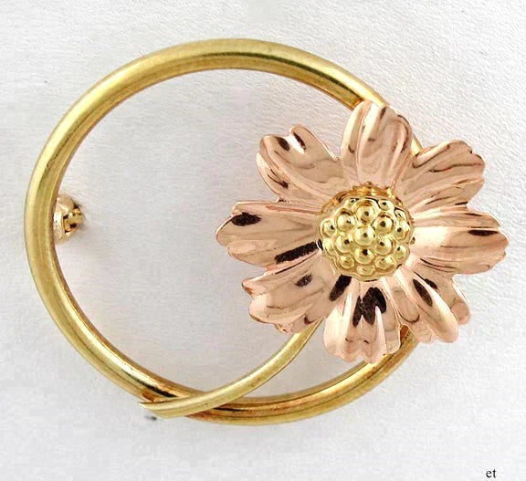 Eckfeldt Ackley Retro 2 Tone 14K Yellow and Rose Gold Flower Daisy Pin Brooch