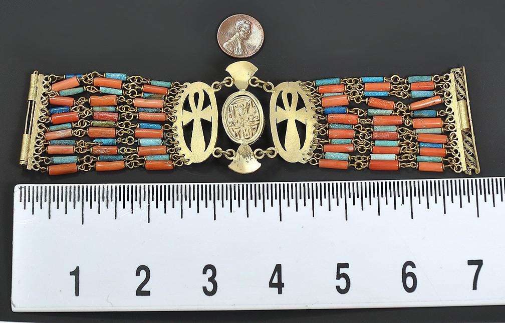 Presented is a very interesting Egyptian multi-stranded bracelet.
