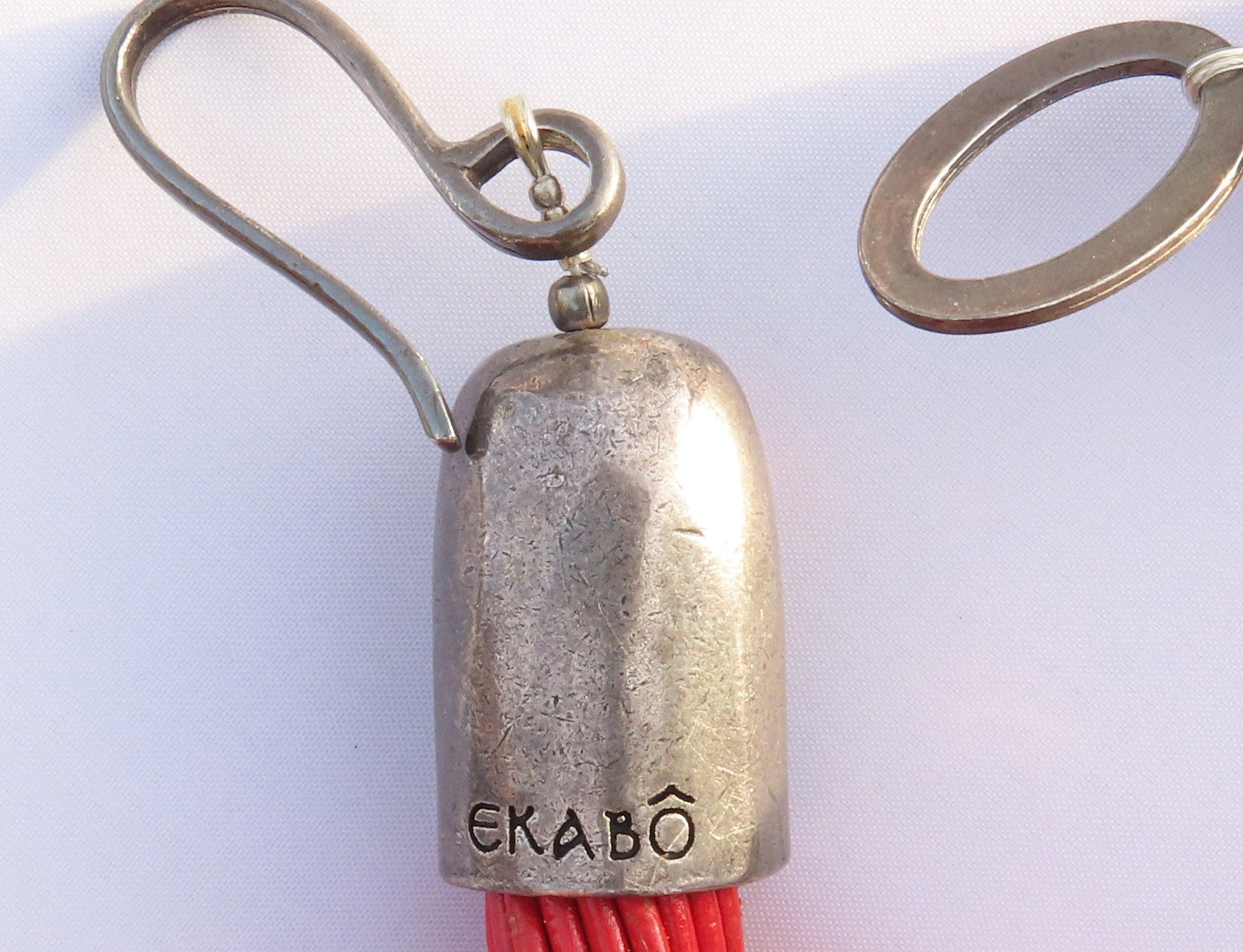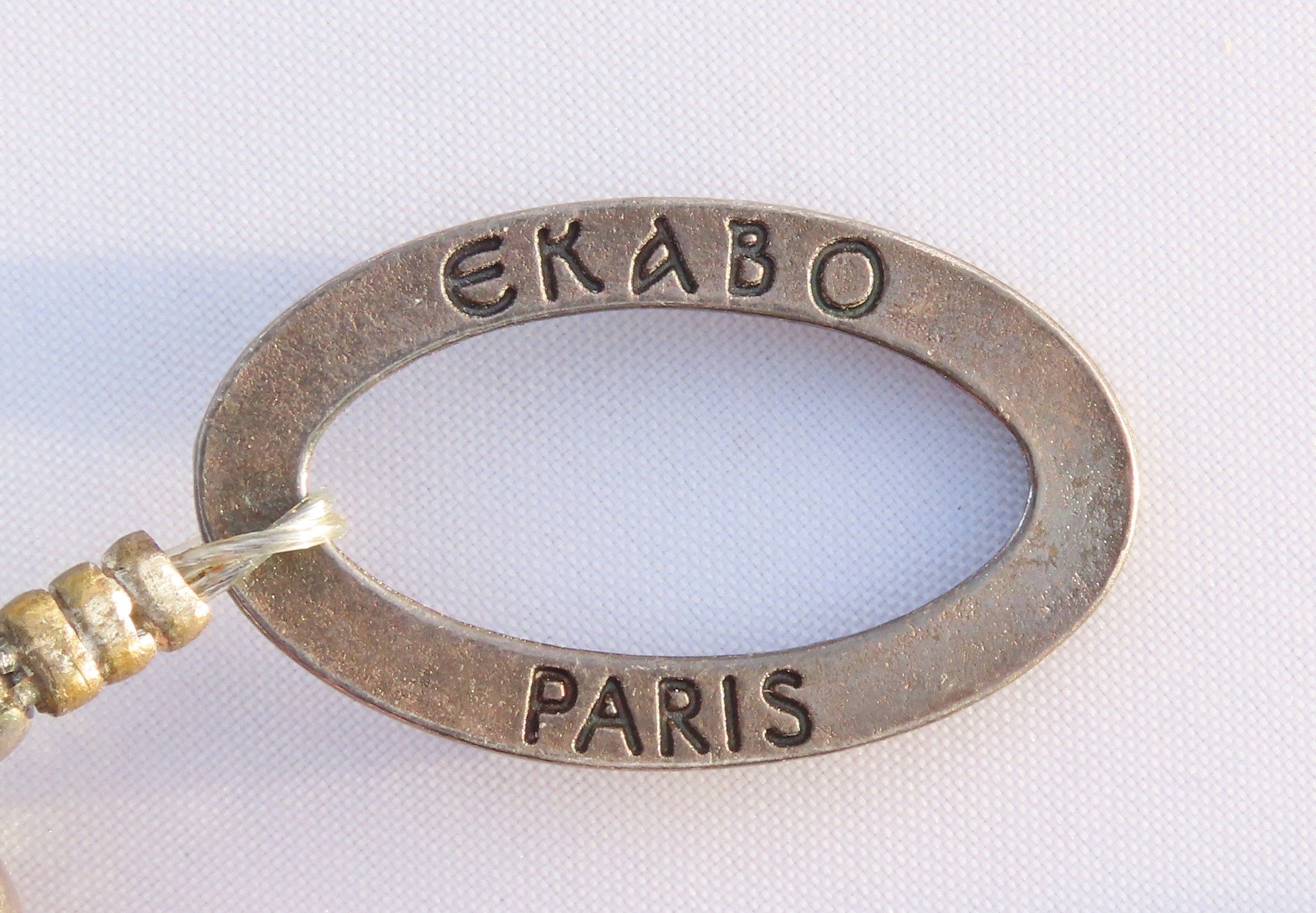 This necklace is marked on each metal end piece with the maker's mark EKABO, and on the closure ring with “EKABO Paris”.