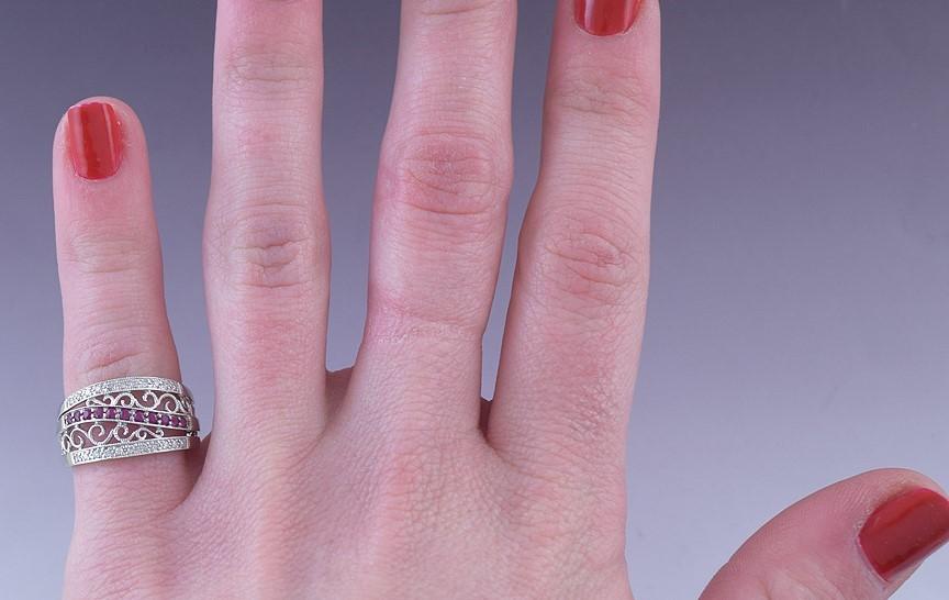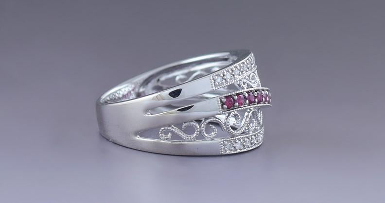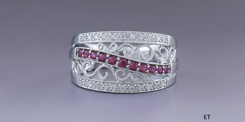 Elegant 14k White Gold Filigree Ruby & Diamond Openwork Ring Size 6.75