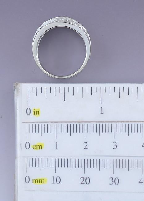 The ring is a size 6 3/4. The ring is about 11.2 millimeters wide at the widest point, and about 4.2 millimeters wide at the narrowest point.