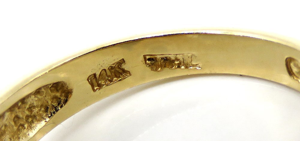 The ring is stamped and guaranteed 14k, as well as a maker's mark and copyright symbol.