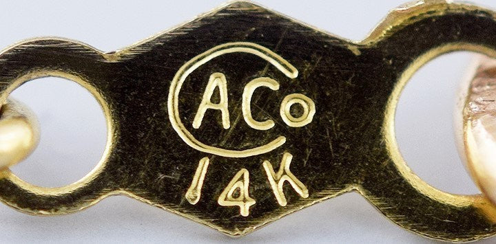 The final link of the chain is stamped 14k as well as A Co. The pendant is not stamped or hallmarks, but we