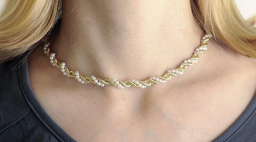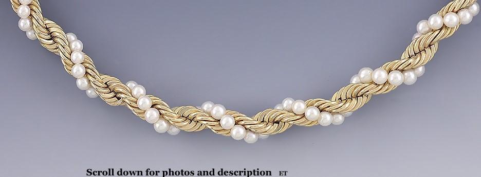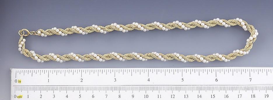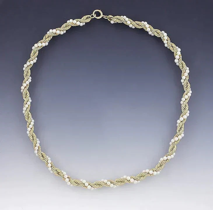 Elegant 14K Yellow Gold & Pearl Twist Necklace Chain Choker