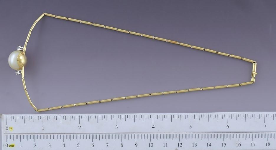 Elegant 18k Yellow Gold Diamond Mabe Pearl Cylinder Chain Necklace