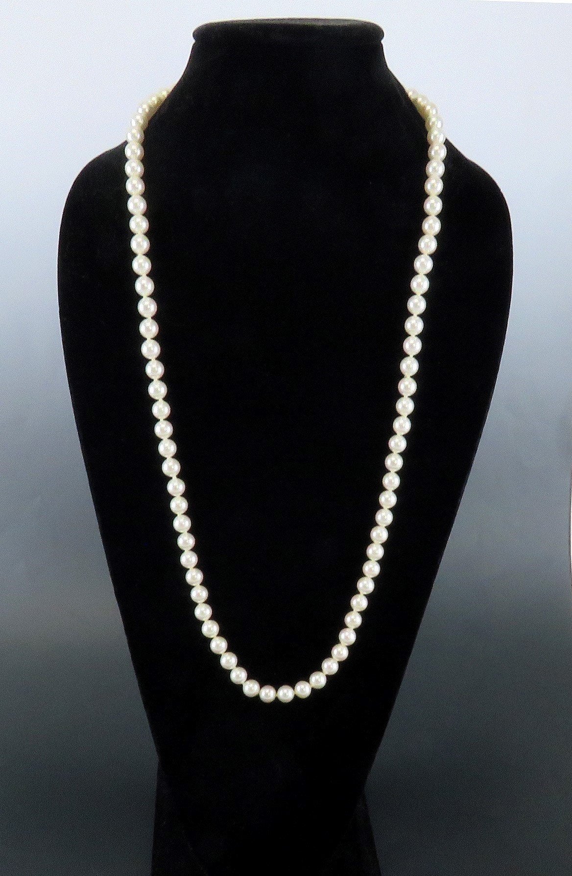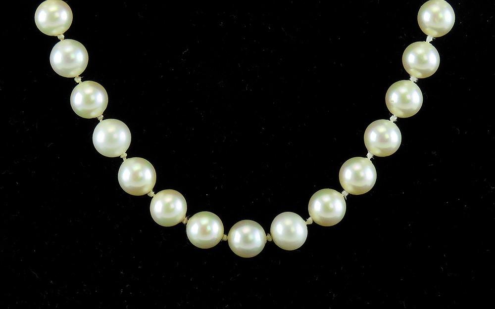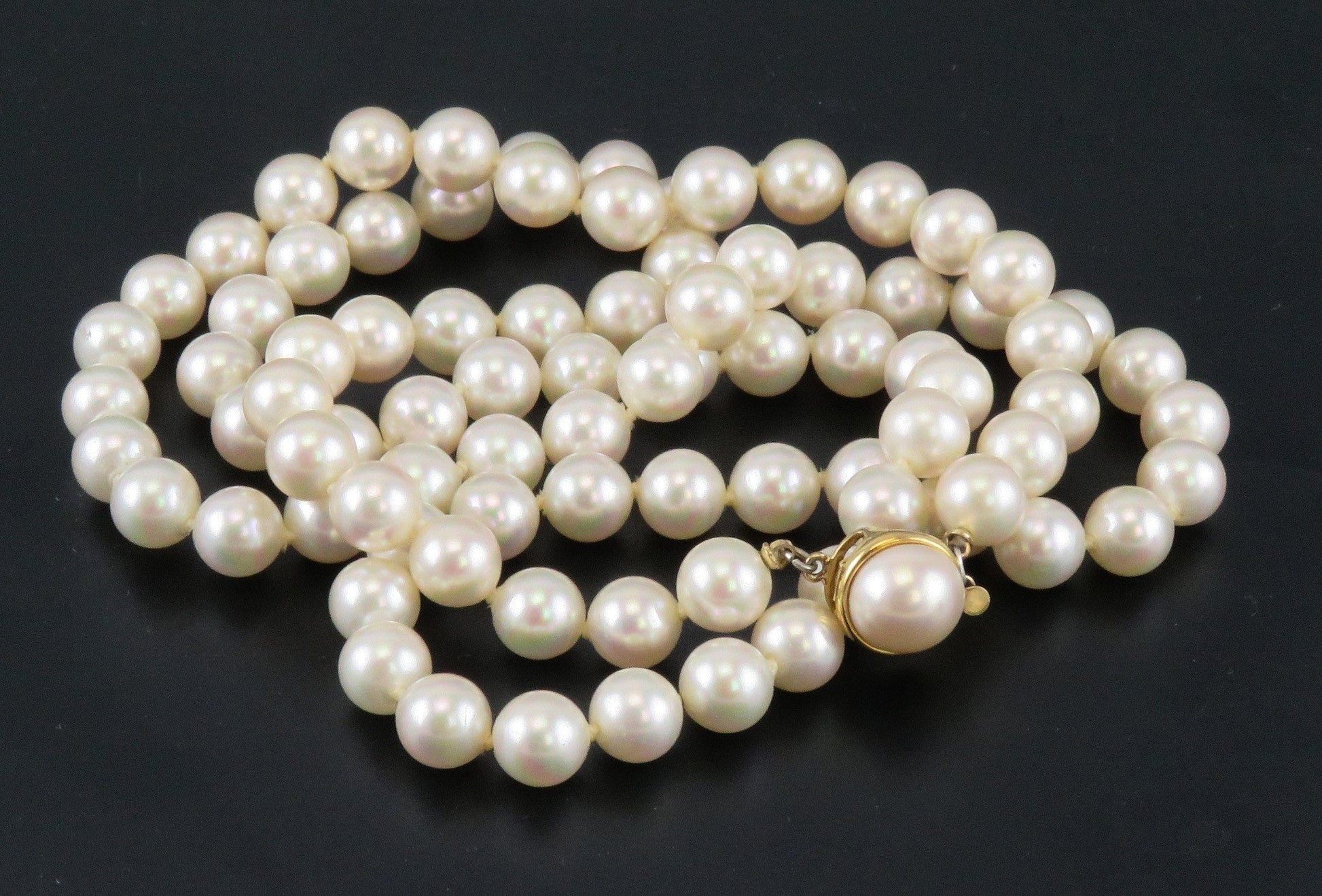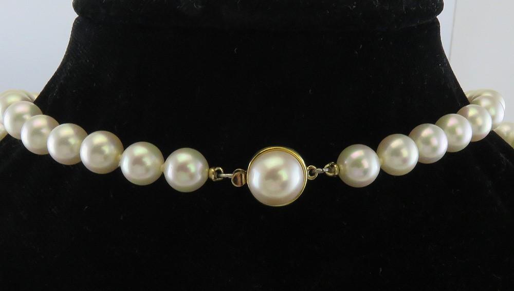 This necklace is in excellent condition. The pearls are clean and in good shape. The clasp functions well and closes securely.