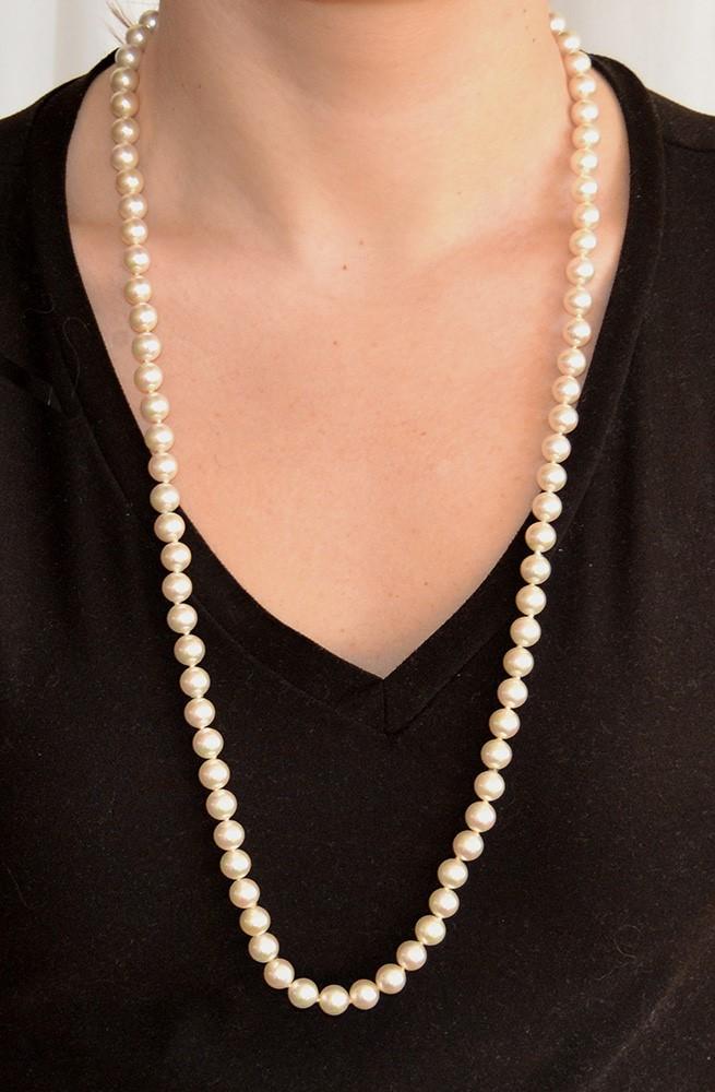 Elegant 30" Strand 8mm Mallorca Faux Pearl Necklace w Sterling Silver Clasp