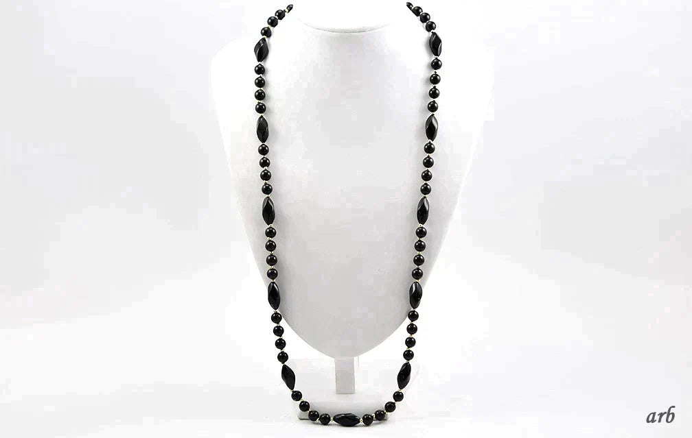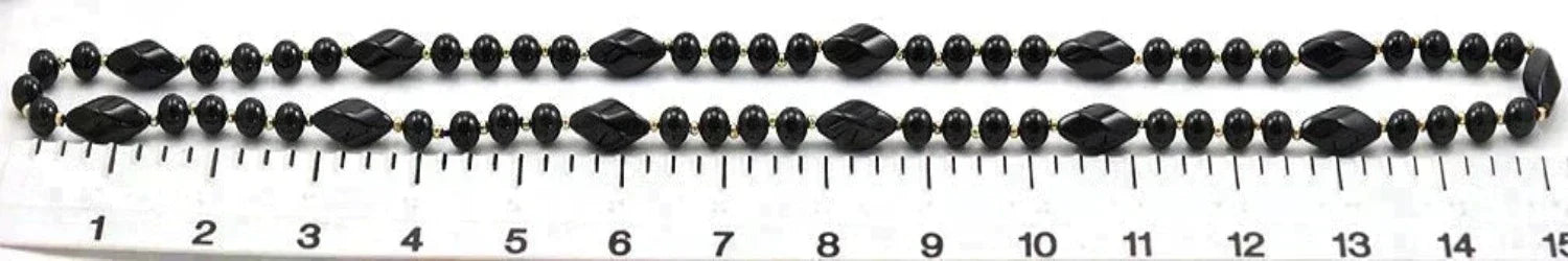 Elegant 31" Necklace of 14k Yellow Gold and Black Onyx Stone Beads No Clasp