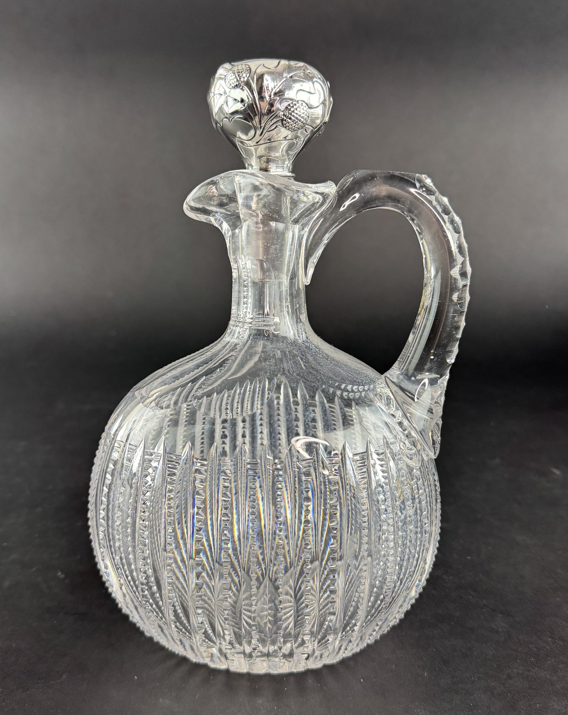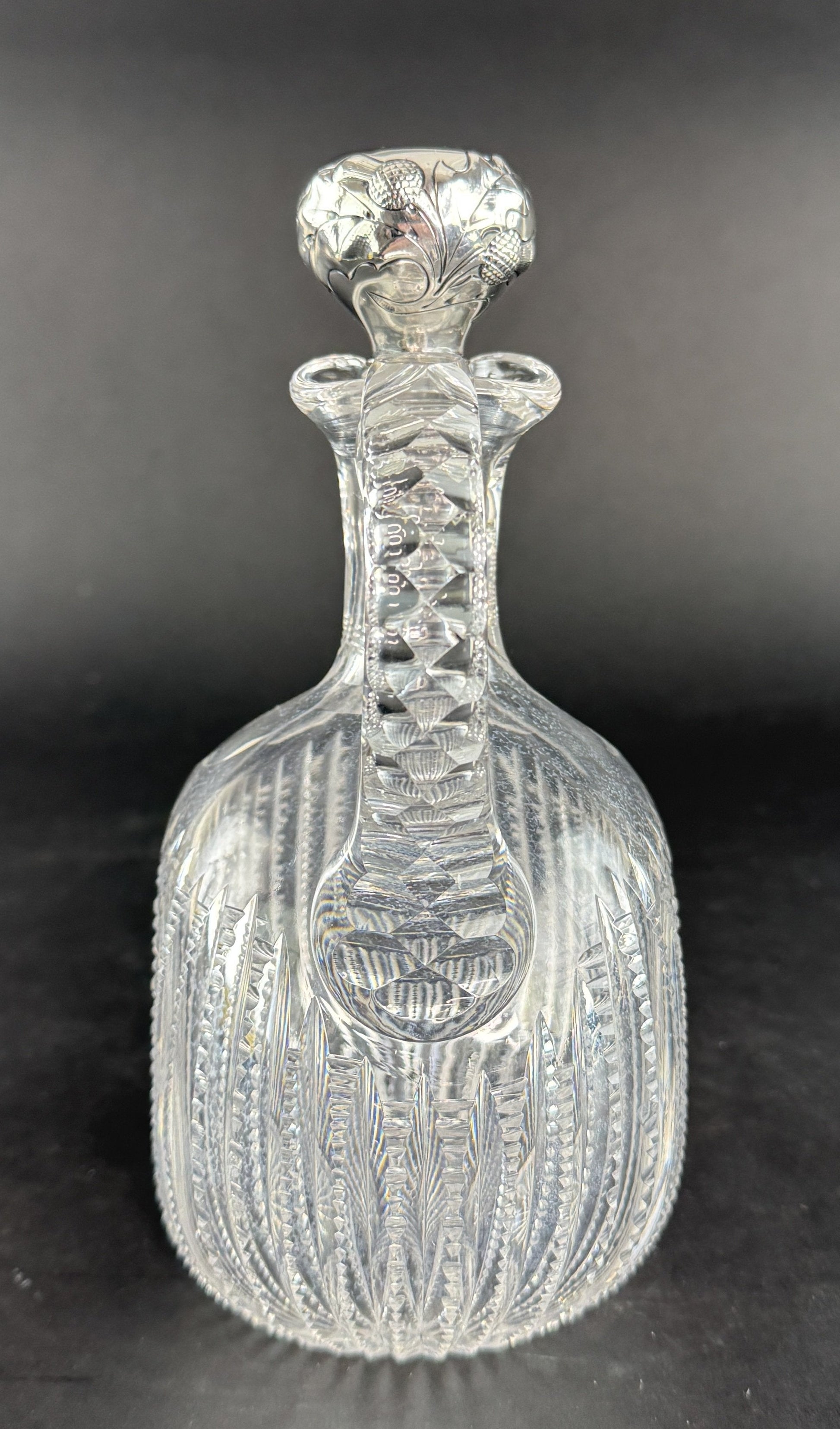 Elegant ABP Cut Glass Gorham Sterling Silver Thistle Scotch Whiskey Decanter