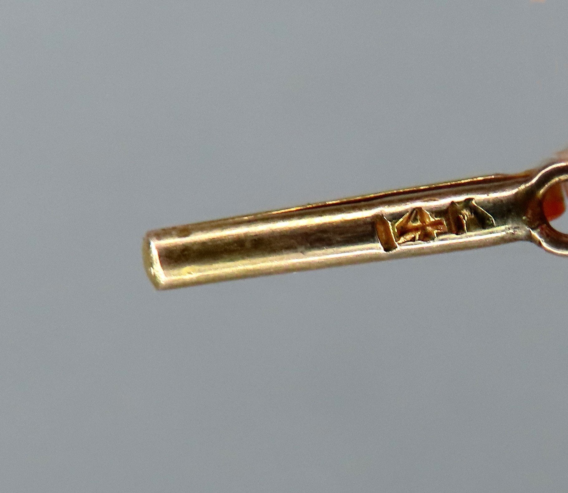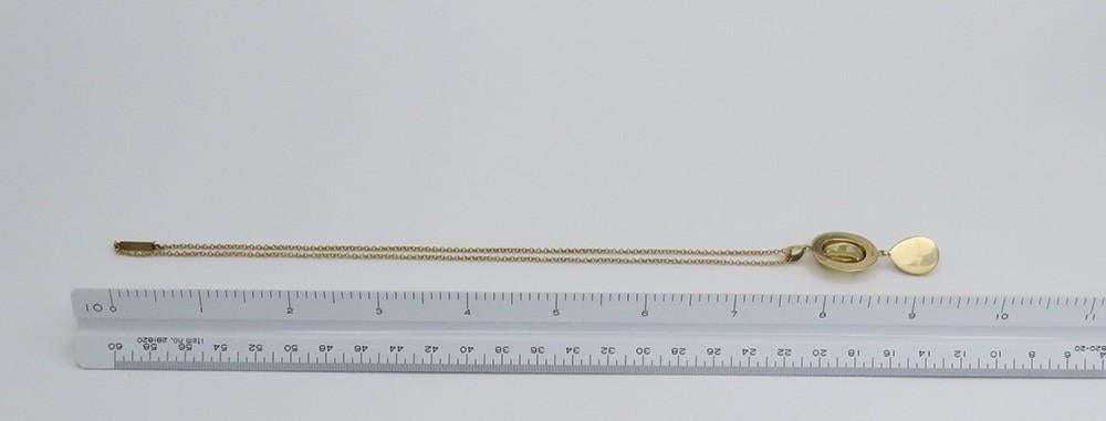 This piece is in excellent condition. The citrine and pearl are securely set and in great shape. The chain has no kinks or breaks. The clasp is working well and closes securely. Both the chain and the pendant are stamped 14k, nitric acid tested and guaranteed.