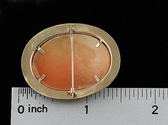The cameo pin measures 1 1/8 inches by 1 1/2 inches.