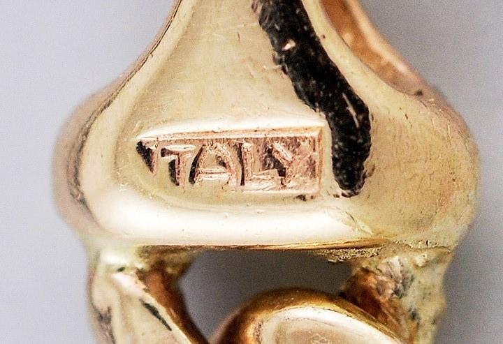 The bracelet is stamped 14k on the clasp, as well as Italy and 14k on the link above the clasp.