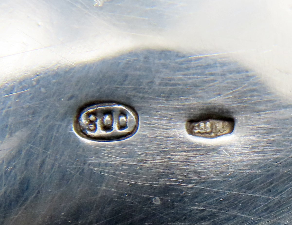 The pitcher is stamped and guaranteed 800 purity silver as well as an Italian government registered maker's mark,***.