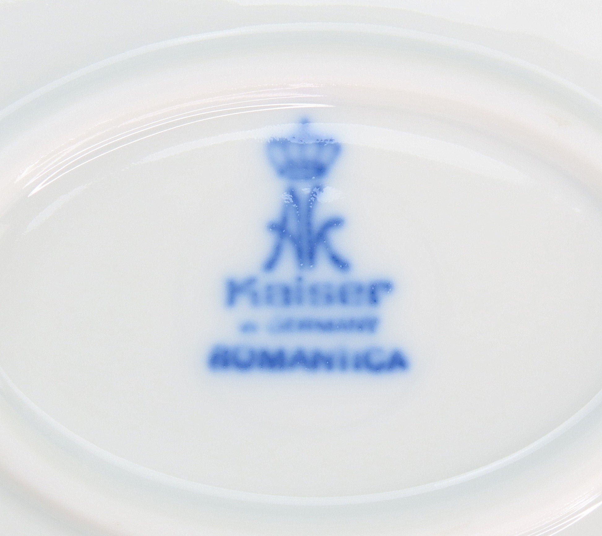 The pair is marked on the underside with the maker's mark for Kaiser and the pattern name “Romantica”.