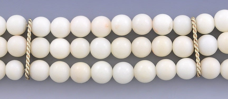 Elegant Triple Strand Coral Bead Bracelet W/Gem Set 14k Gold Clasp