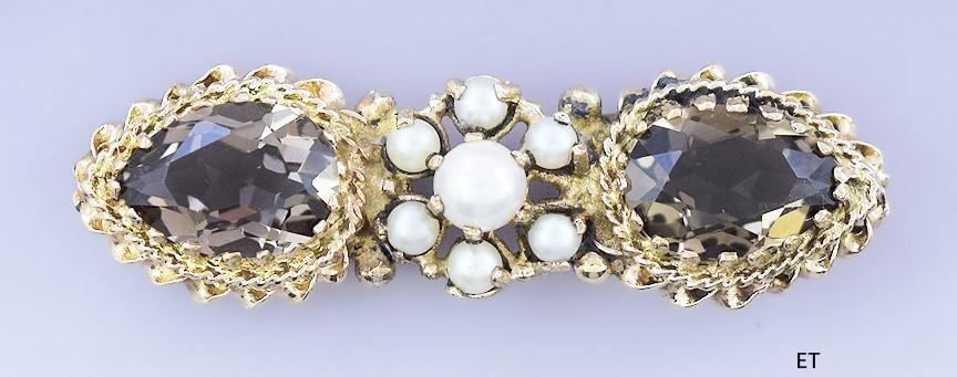 Elegant VTG 14k Yellow Gold Pear Teardrop Smoky Quartz Pearl Pin Brooch