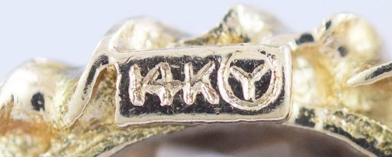 This piece is stamped 14 karat gold, nitric acid tested and guaranteed.