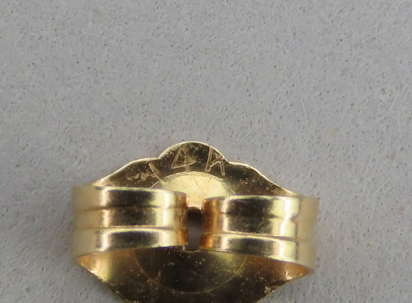 The earrings are stamped 14k on the butterfly backs. We have tested all parts with nitric acid and guarantee them to be 14 karat gold.