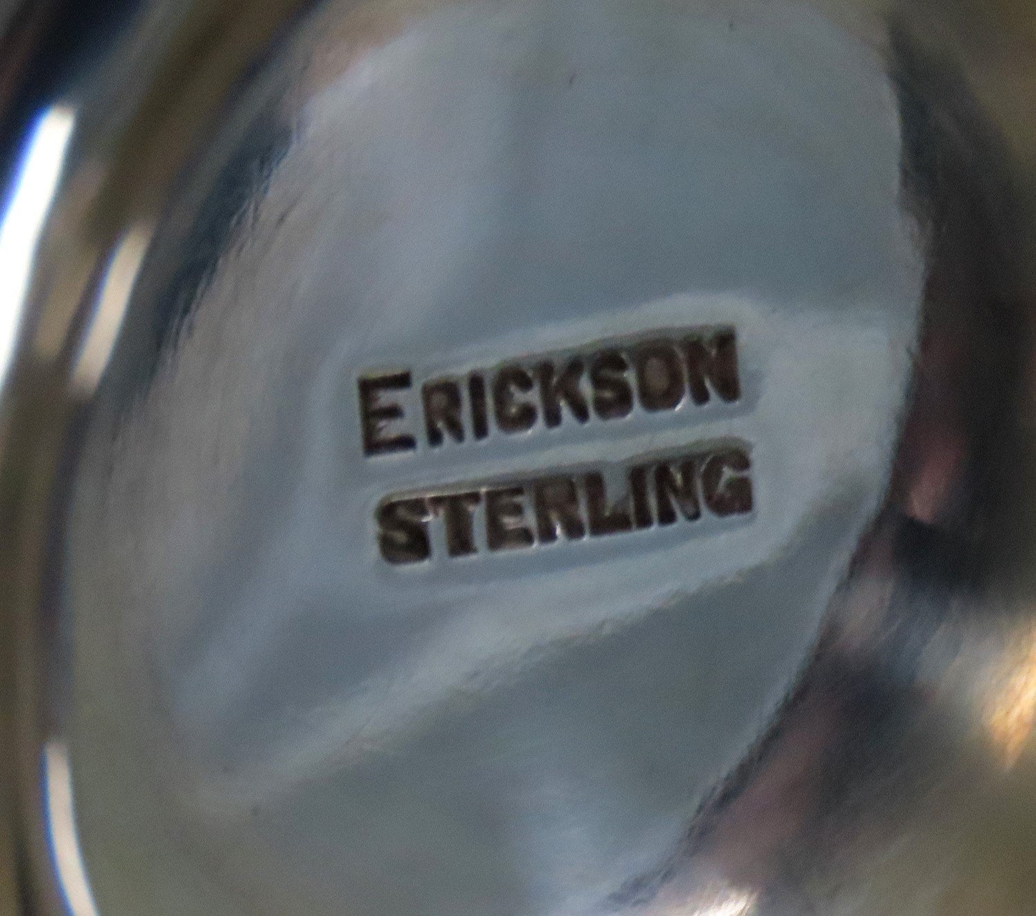 The teapot is stamped with the maker's mark for Erickson as well as sterling, on the underside.