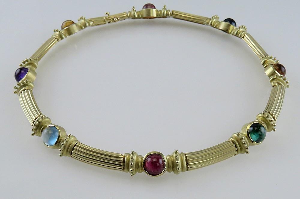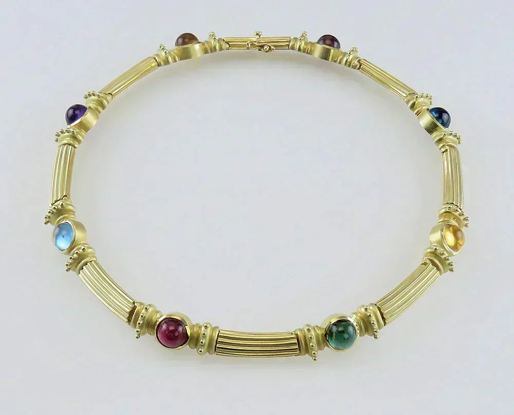 Etruscan Style 14K Yellow Gold Amethyst Tourmaline Citrine Topaz Choker Necklace