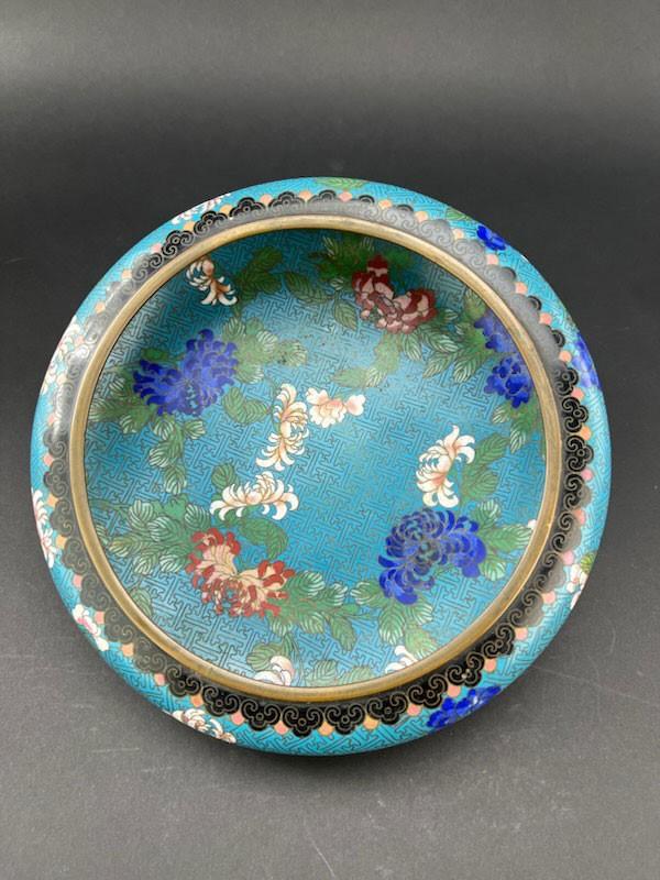 Excellent Antique Chinese Cloisonne Enamel Floral Bulb Bowl Brush Washer