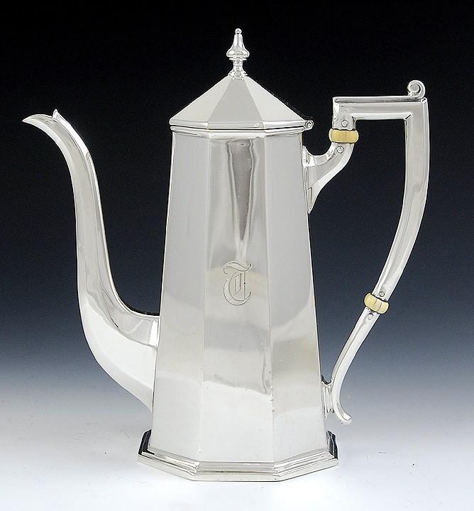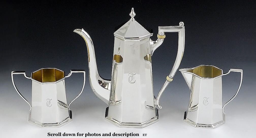 Excellent Quality 3 pc Octagonal Sterling Silver Tea Set Black Starr & Frost