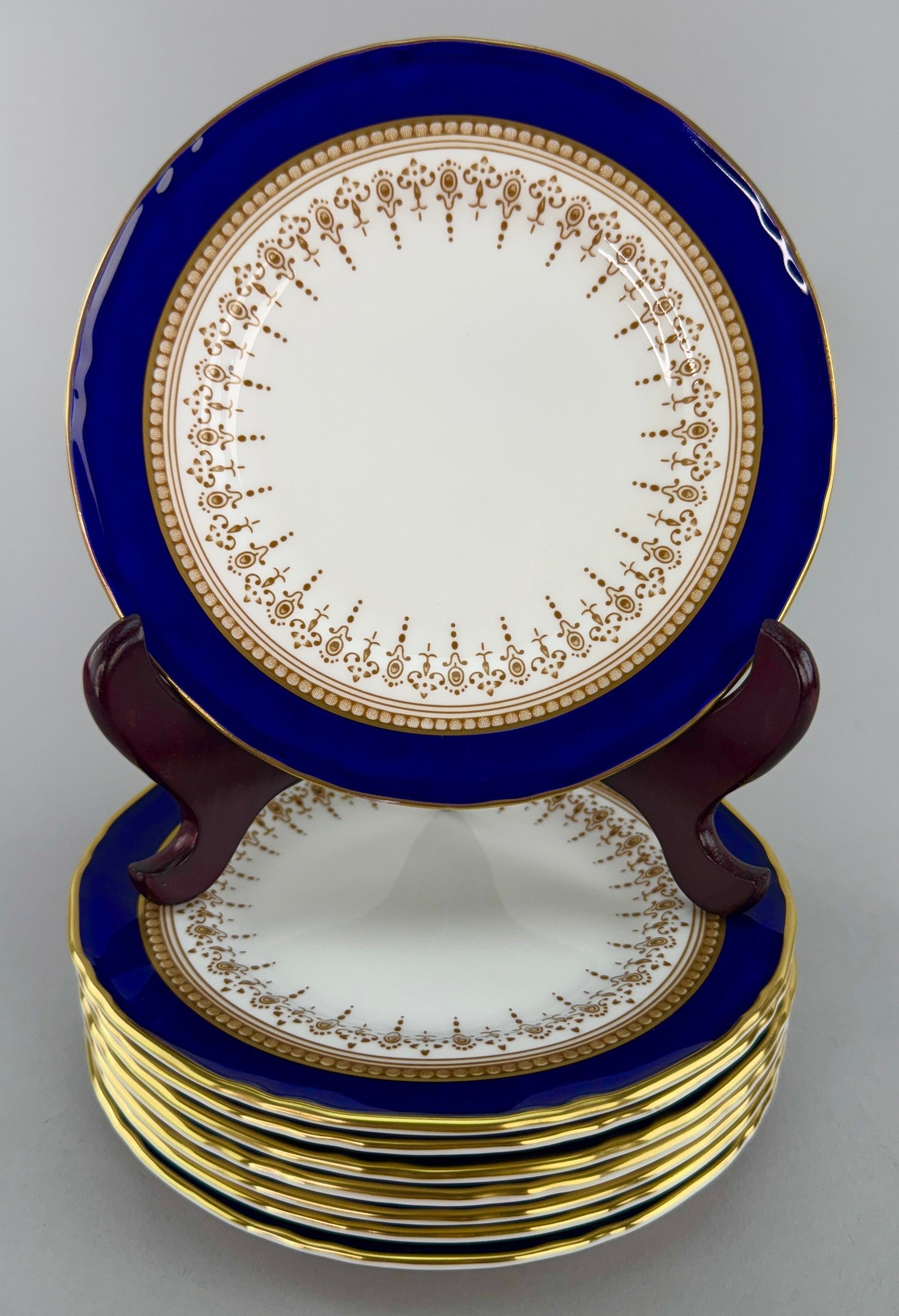 Excellent Set 8 Royal Worcester Regency Cobalt Blue Gilt Bread Butter Plates