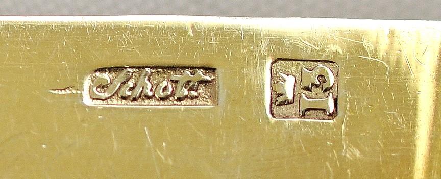 The knives are marked Schott and the loth mark 13 with a crown above, which represents .812 purity.