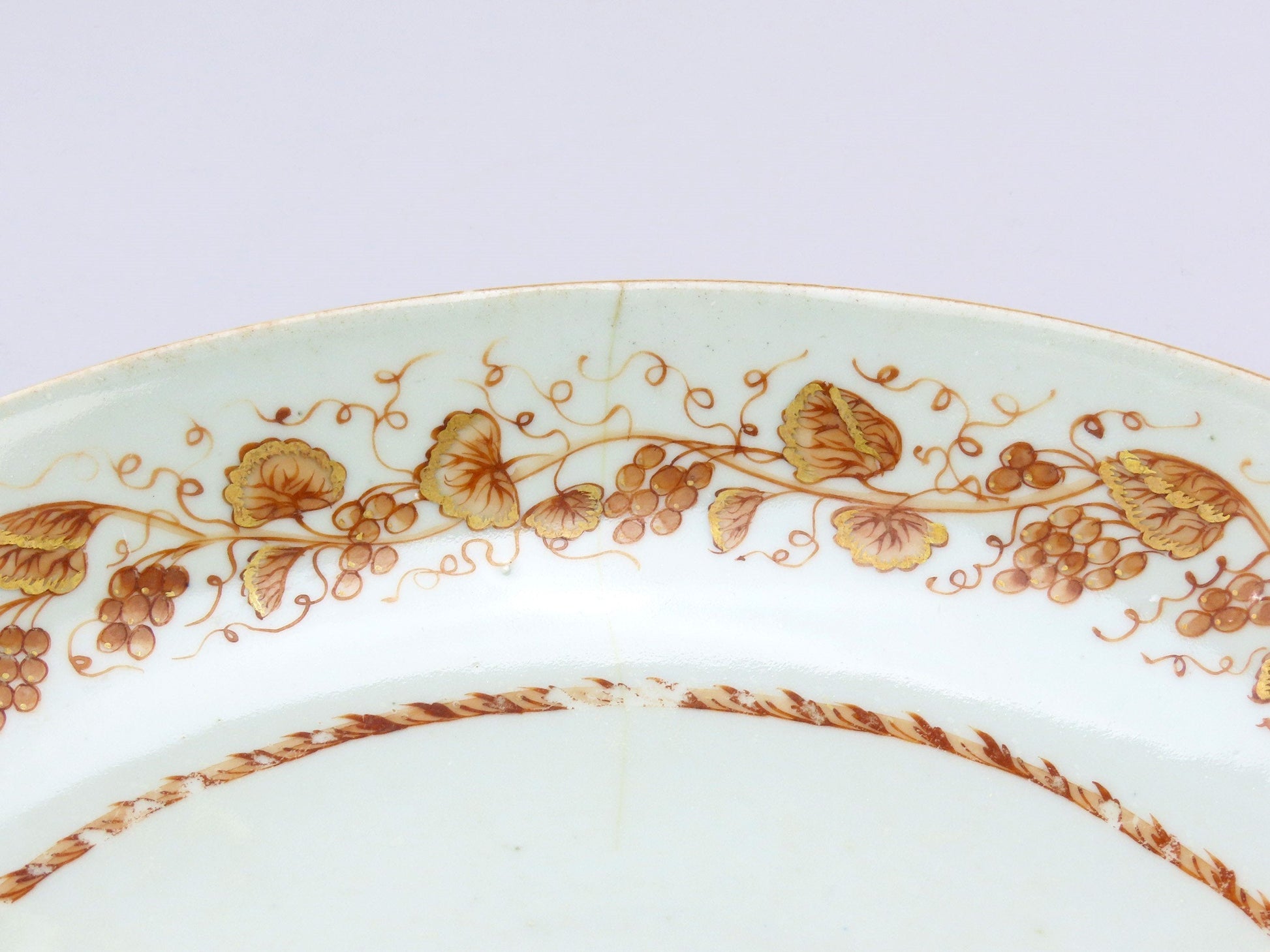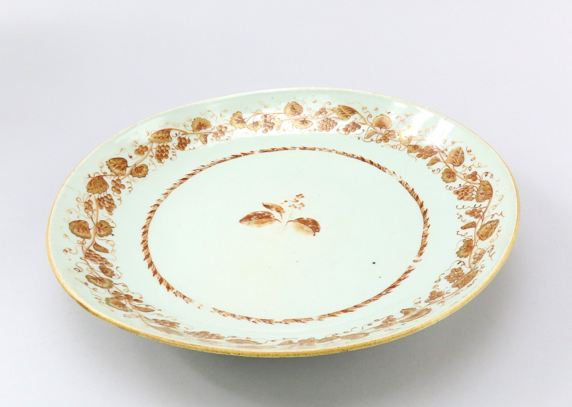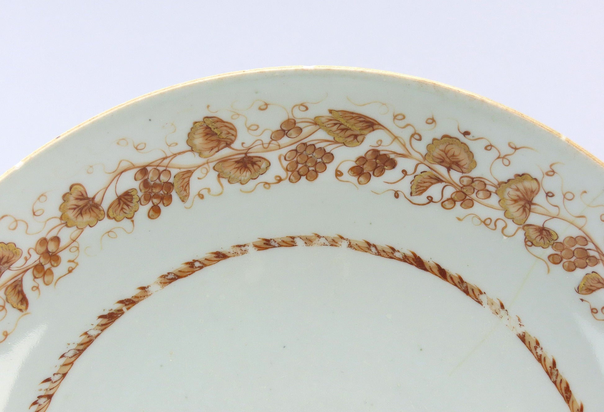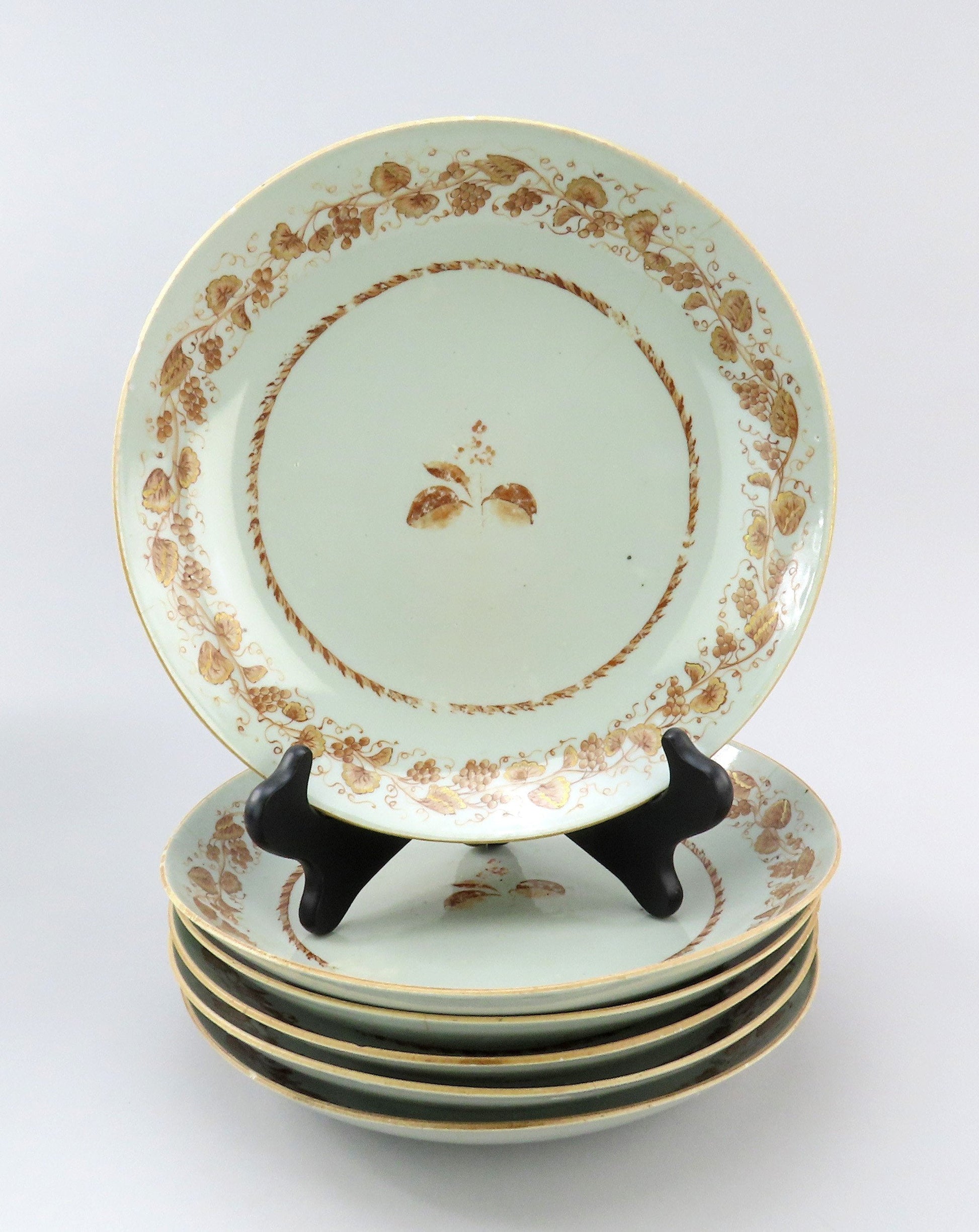 Exceptional Set 6 c1790 Chinese Export Porcelain Brown Grape Vine 9.5" Plates