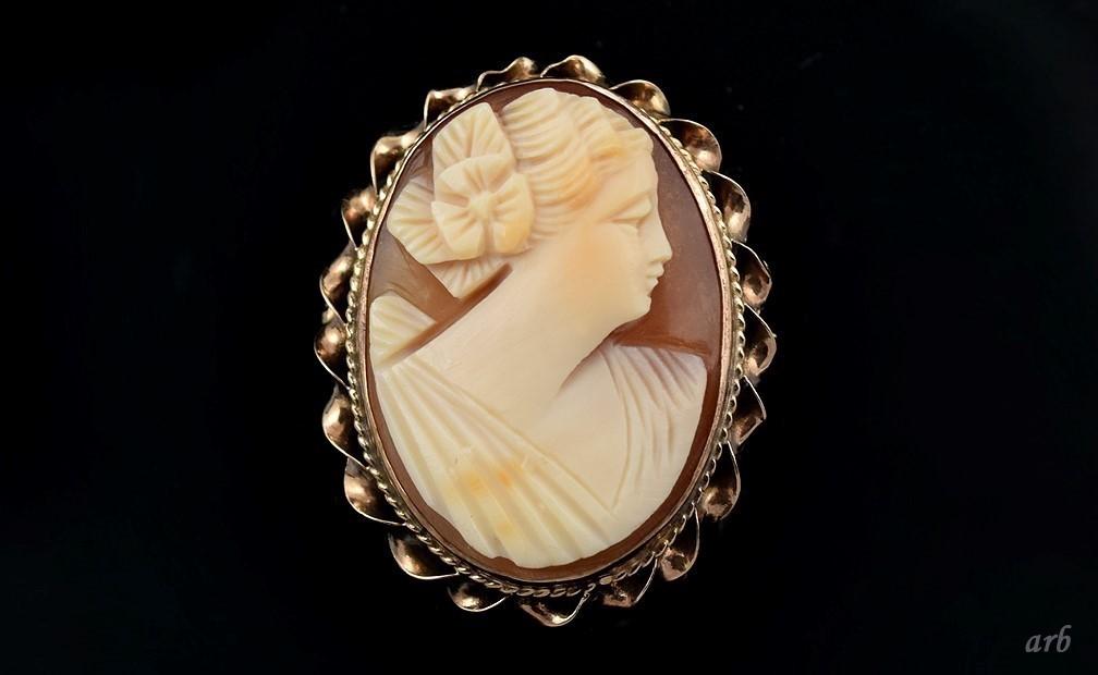 Exquisite 1920/30s 10k Yellow Gold Carved Cameo of a Woman Pin Pendant