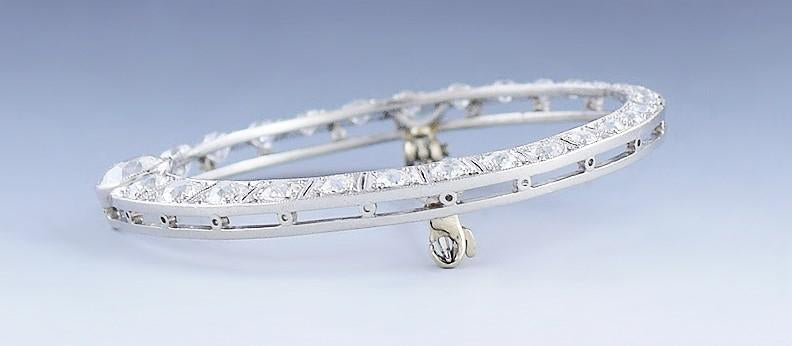 The brooch is in great condition. The diamonds are securely set. The clasp functions well and closes securely.