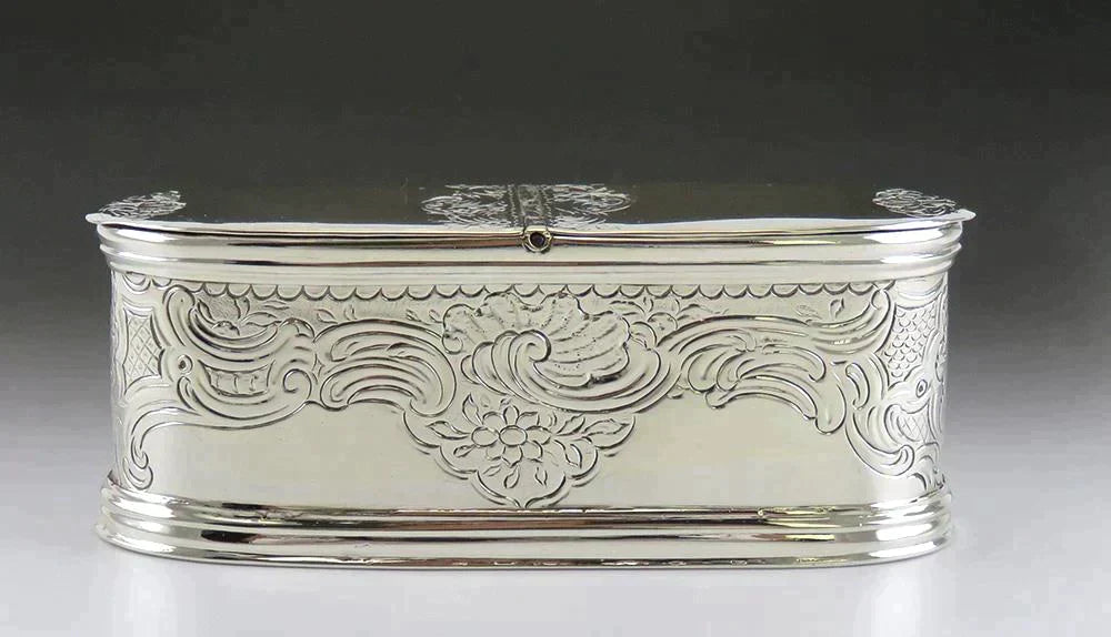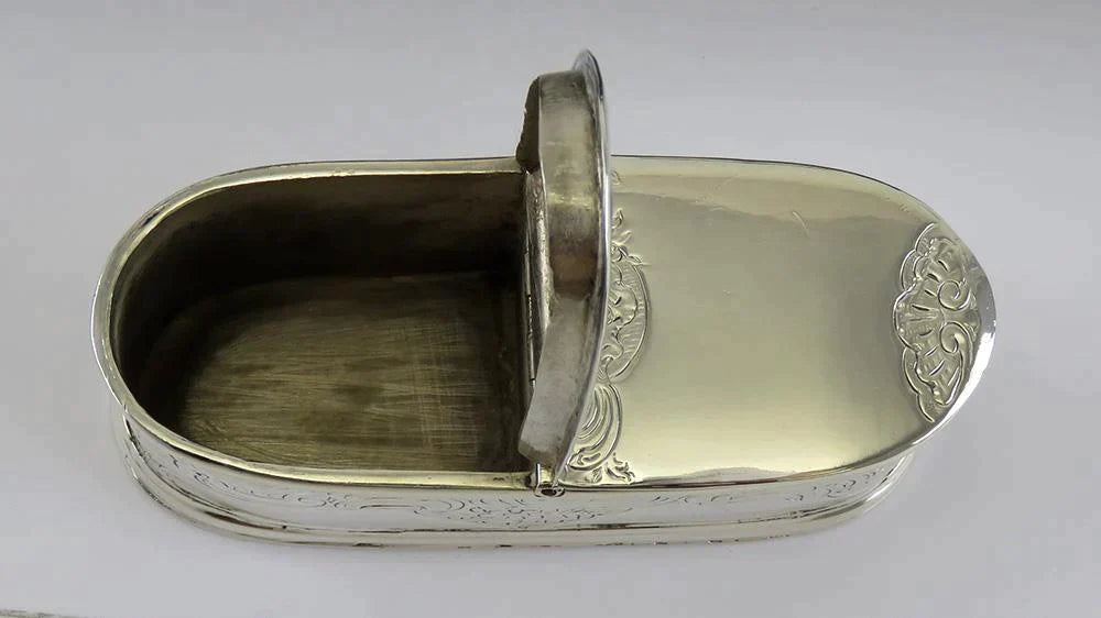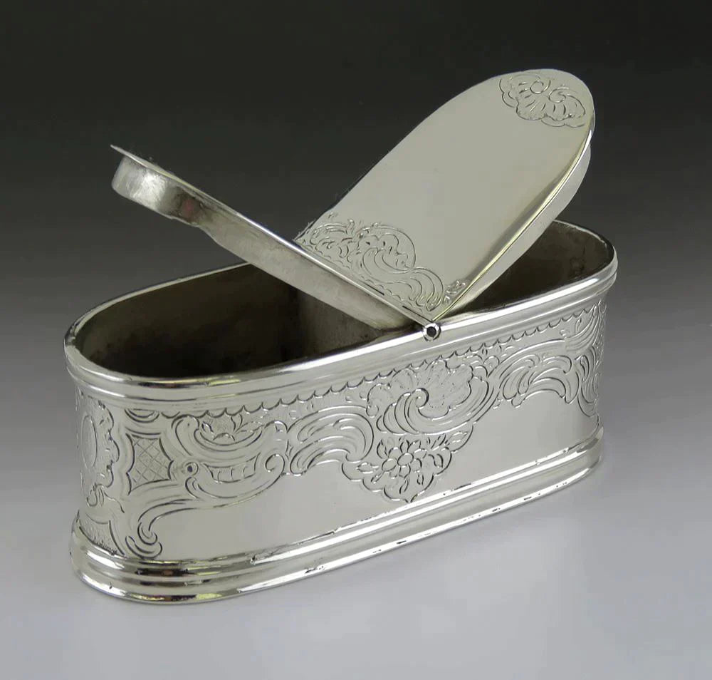 Exquisite c1740s French? European Silver Double Ended Oval Snuff Box Hand Chased