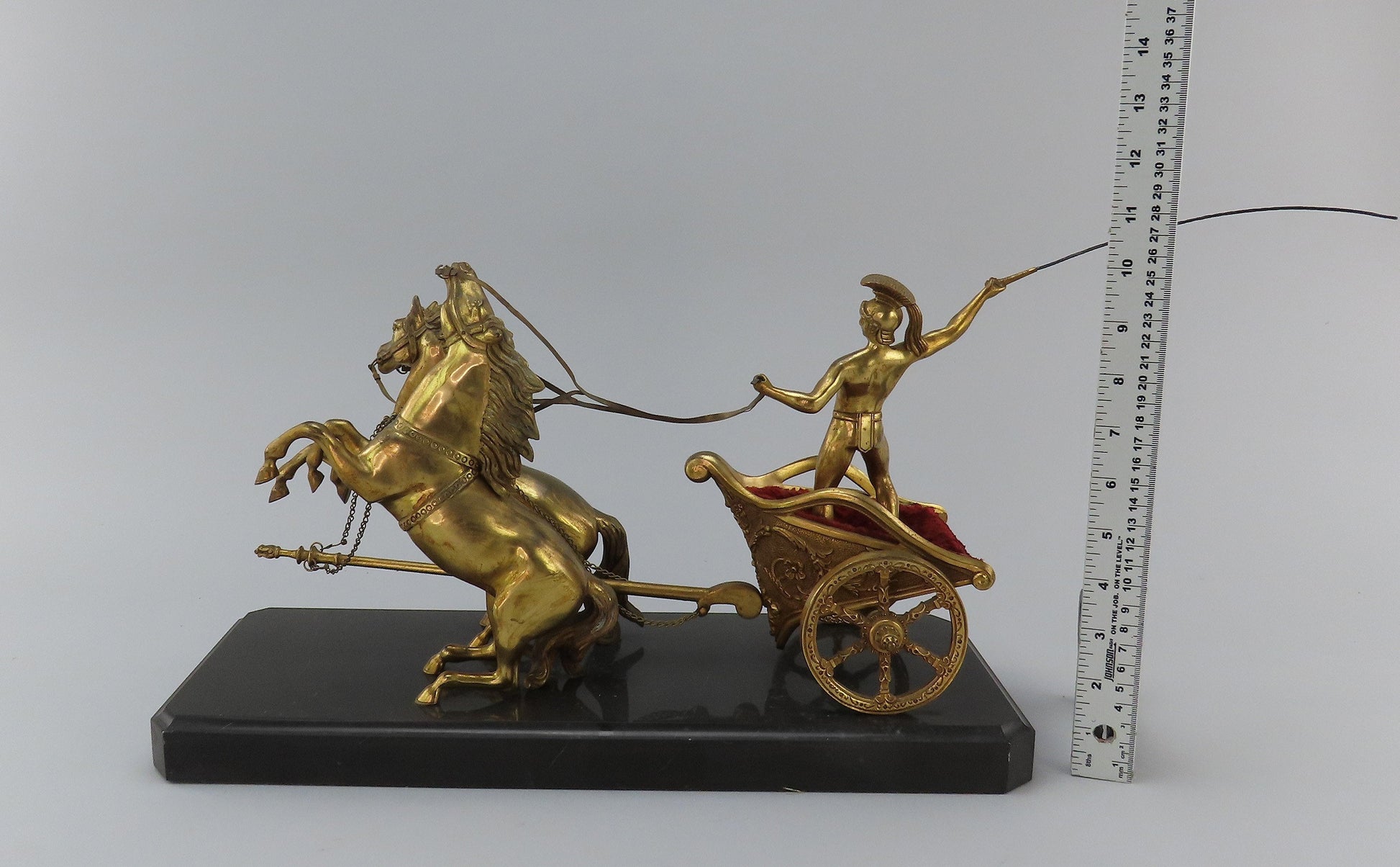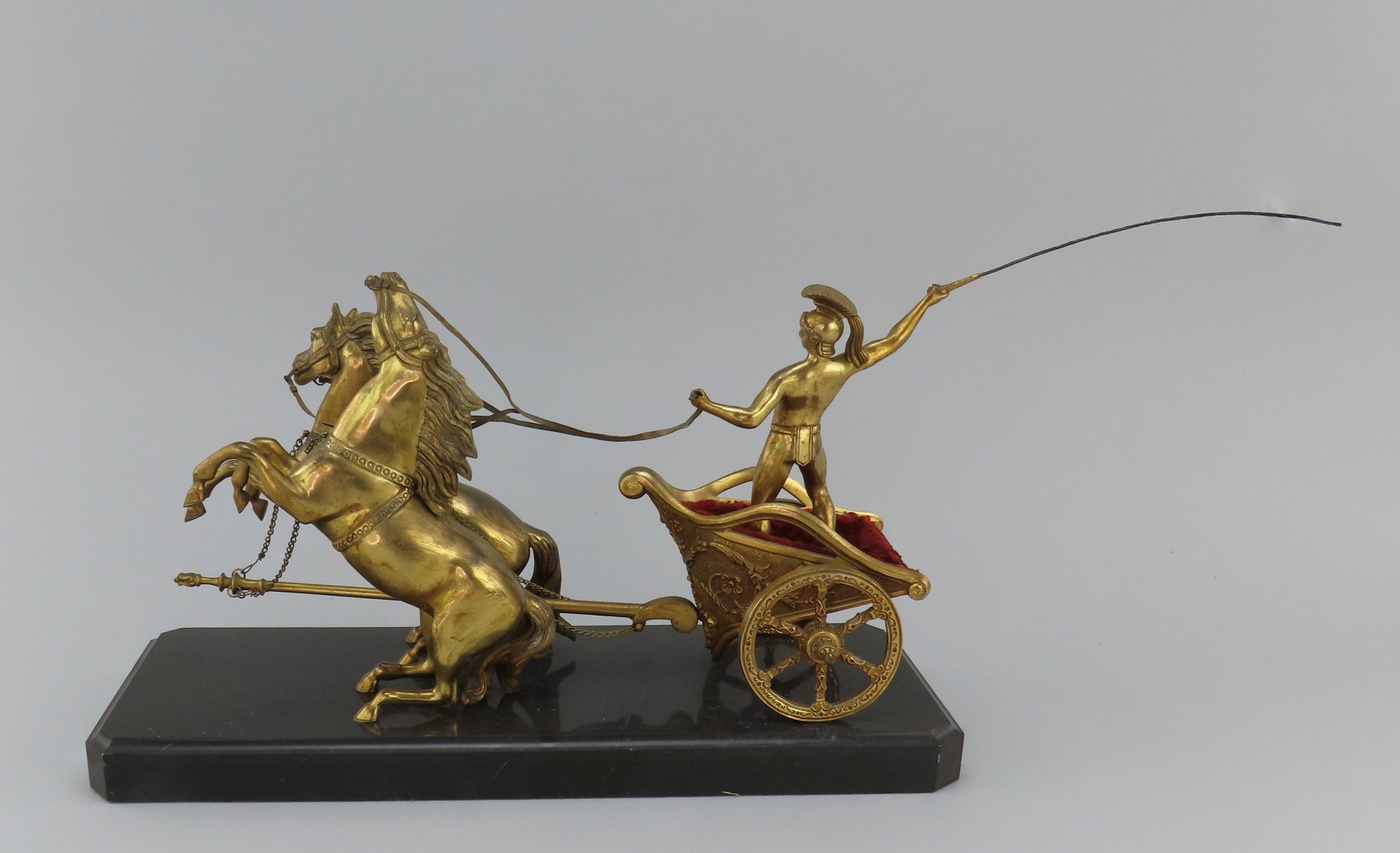 Exquisite Gilt Bronze Roman Charioteer Chariot Barbeitos Lisboa Portuguese