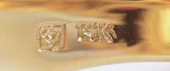 The ring is stamped 14k as well as China and a maker's mark we unfortunately do not recognize.