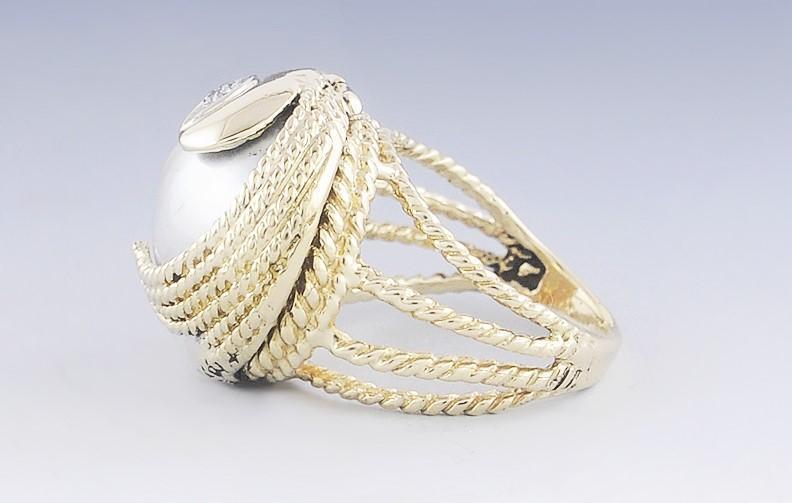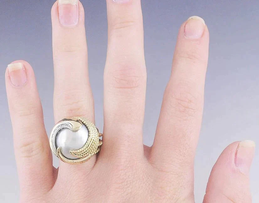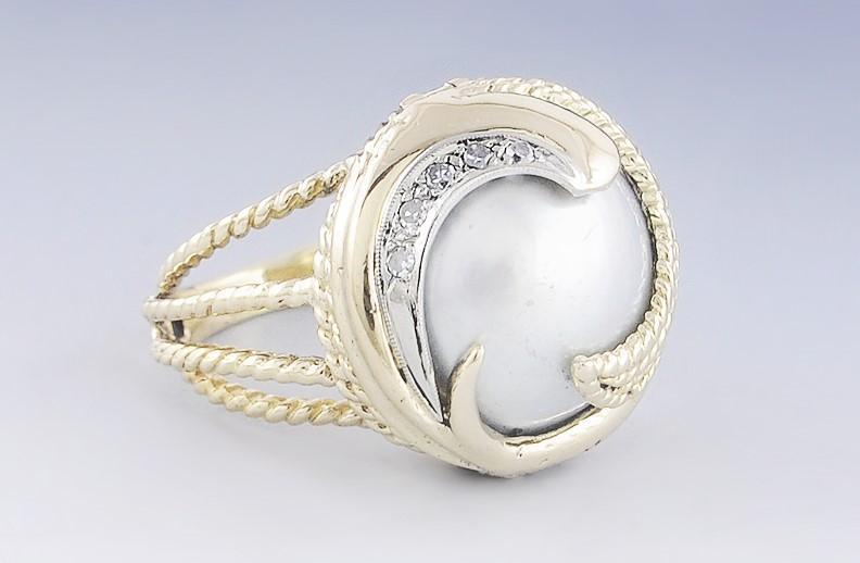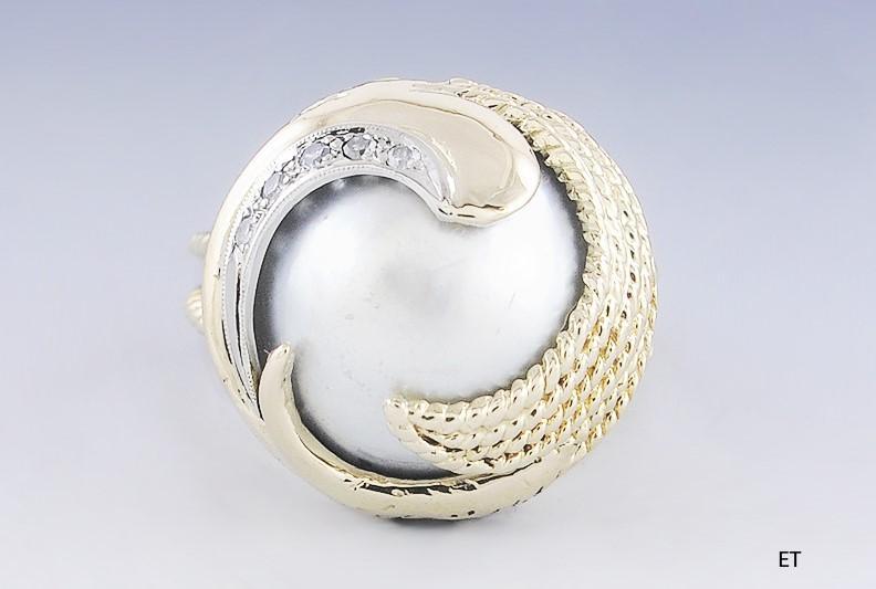 Eye-catching 14k Yellow Gold Diamond & Mabe Pearl Ring Size 7.5