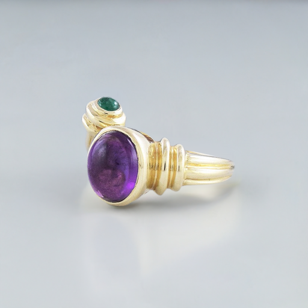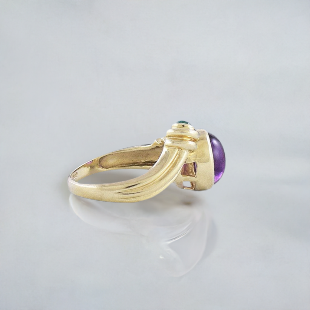 Eye-catching 14k Yellow Gold Amethyst & Emerald Ring Size 7.75