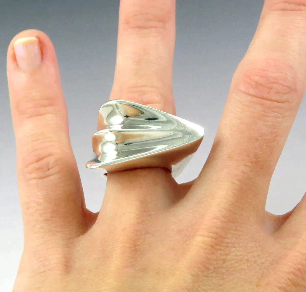 Eye Catching Signed Patricia Von Musulin Sterling Silver Arrowhead Large Ring